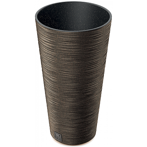 Okrogel cvetlični lonec, ki vsebuje do 33% naravnega lesa. Z integriranim vložkom za zemljo. Odporen je proti vremenskim vplivom in ima odlično UV zaščito.