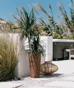 Cvetlični lonec FURU je primeren za zunanjo in notranjo uporabo. Naravni videz, ki ga doseže lesena struktura, daje policam, mizam in talnim vitrinam slog boho.